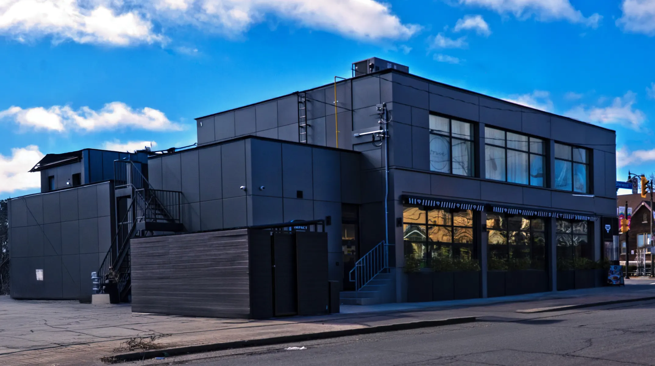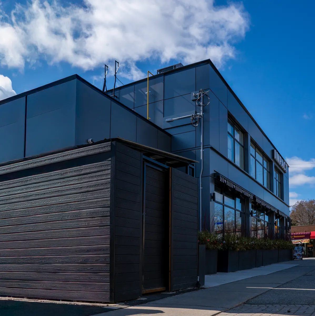 Located in the heart of Toronto’s bustling Yonge Street corridor, this commercial cladding project at 2555 Yonge St. brings modern architectural design and brand identity together in one seamless execution. Home to Impact Kitchen, a business known for its commitment to quality, nutrition, and transparency, the building façade was designed to reflect the same principles.