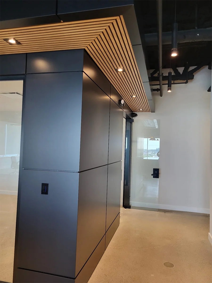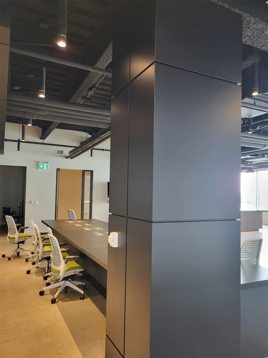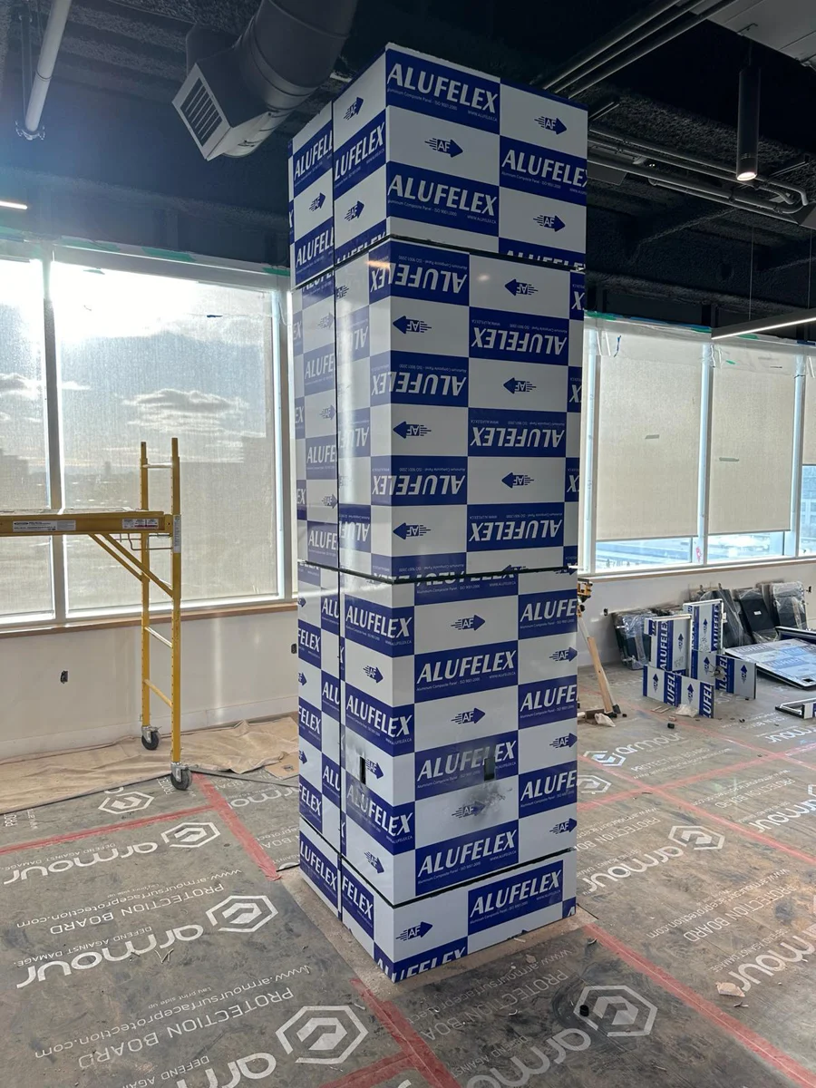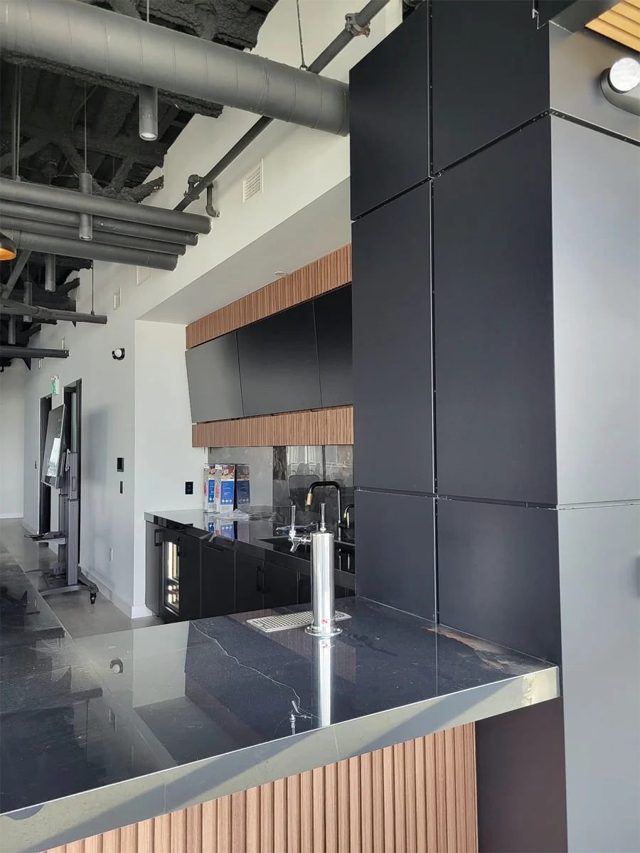 - Services Provided: Façade consultation & 3D renderings • Aluflex ACM procurement • Wood-composite soffit fabrication • Interior ACM wall installation • Quality assurance & warranty
