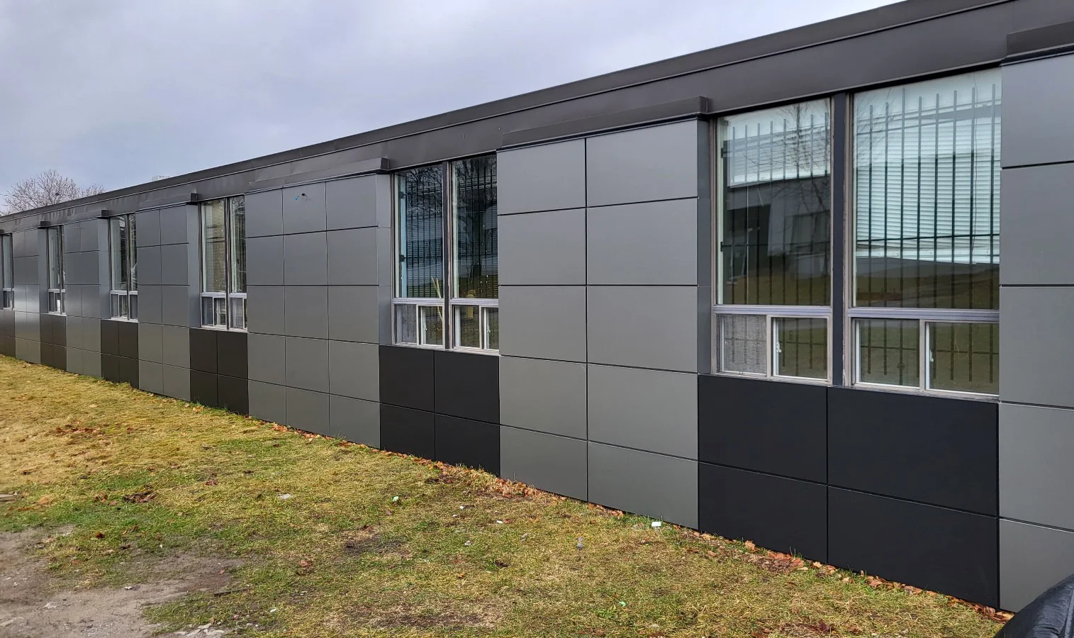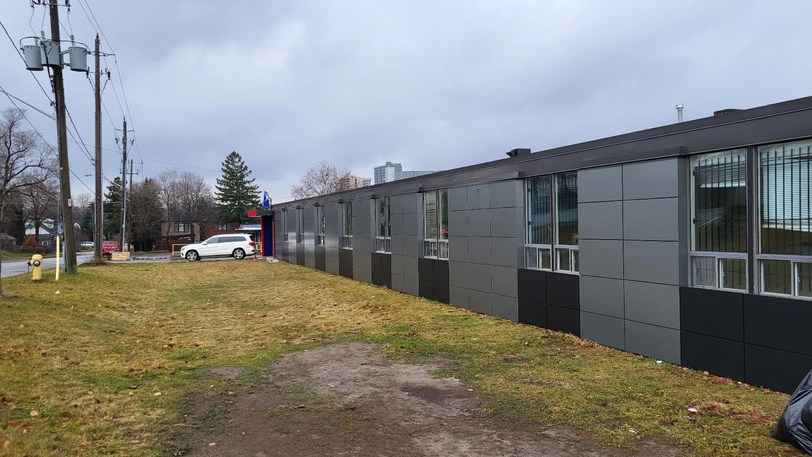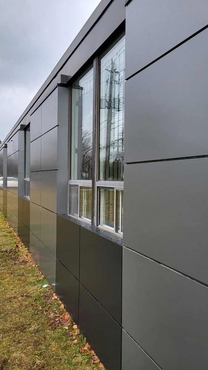 At the 44 Milne Ave Scarborough site, BuildSky transformed the exterior with premium Alubond panels renowned for their fire-safe core and weather-resistant finish. The charcoal ACM cladding panels deliver a uniform, high-flatness surface, giving the building a bold, professional presence. Our team managed every phase—material procurement, CNC cutting to exact dimensions, and expert installation with concealed fasteners—ensuring a crisp, uninterrupted façade.