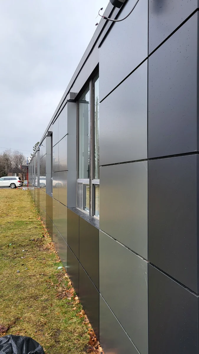 For Niru Enterprise Inc., BuildSky installed a striking dark grey Alubond ACM cladding façade at their Scarborough facility. This commercial cladding project combines the non-combustible performance of Alubond A2 panels with a sleek, contemporary look—perfect for enhancing brand image and building durability.