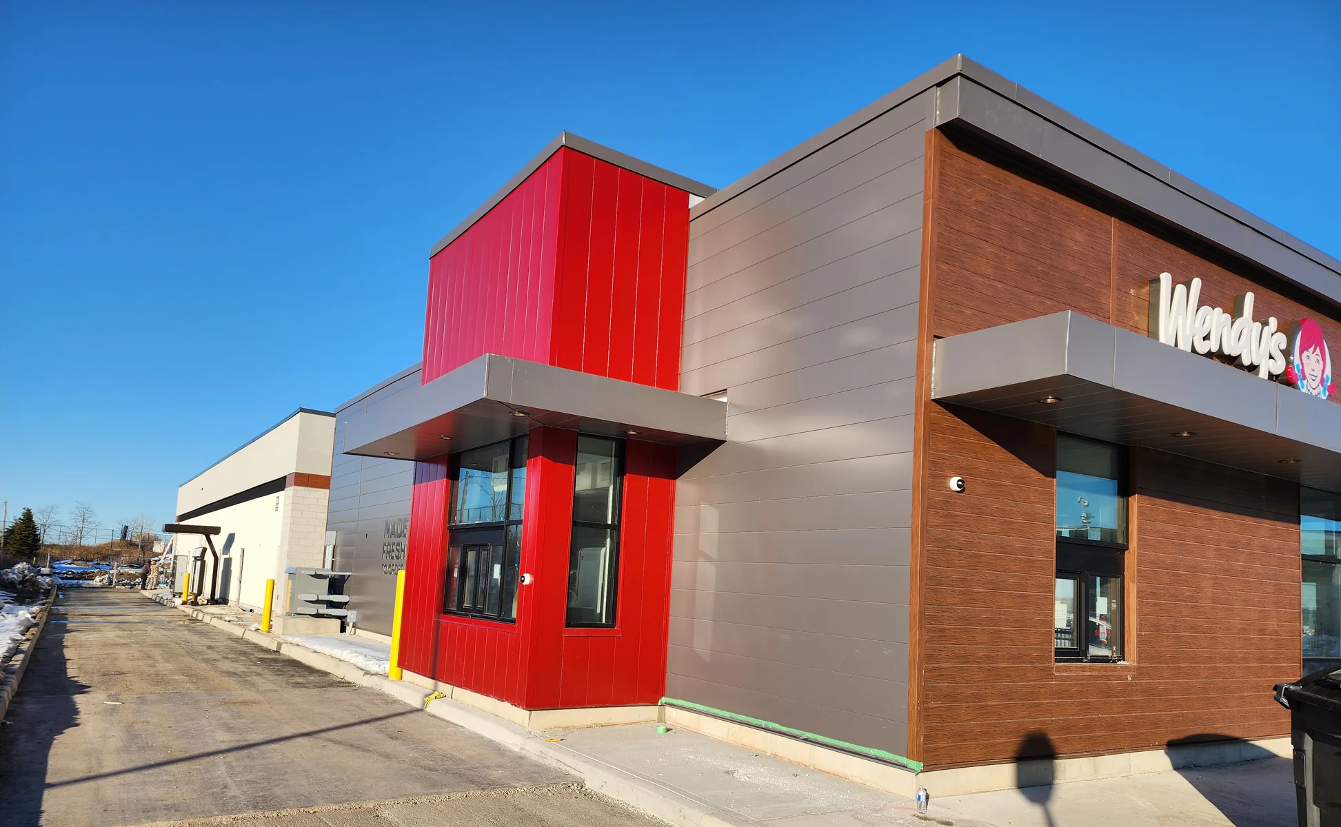 - Project Category: commercial cladding Hamilton • ACM cladding Hamilton • Wendy’s cladding façade • restaurant cladding Toronto